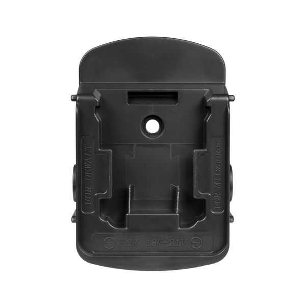 Batteriadapter til AGGE Workmate arbejdslampe, som gør det muligt at tilslutte skruetrækkerens batteri som strømkilde. Der findes adaptere til de mest almindelige slide-on 18-21V batterier fra Bosch, DeWalt, Makita, Milwaukee, Stanley, Black & Decker, Hikoki og Hitachi.