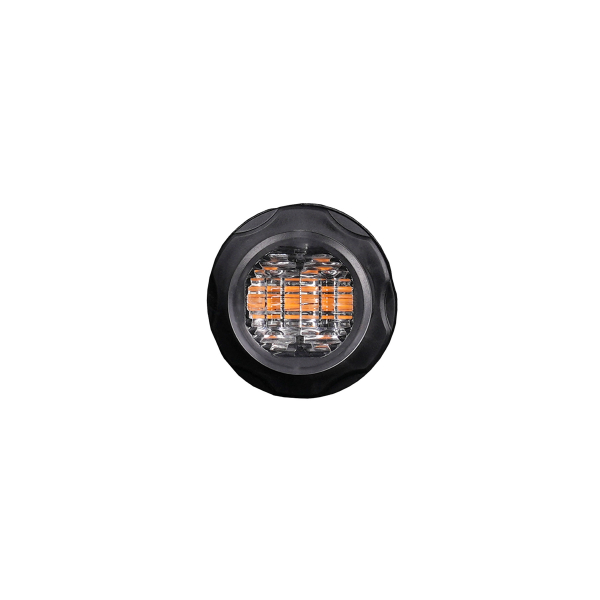 Purelux Strobe Round er et stilfuld indfalds monteret advarselslampe/blitzlys designet til at være en del af belysningen til tungt udstyr og arbejdsmaskiner. Den forsænkede montering af lampen gør, at kun fronten af lampen og linsen er synlig. Strobe Round kan enten monteres på bestemte monteringsbeslag, som allerede er på køretøjet, ellers kan den monteres på sit eget sted, for eksempel på kofangeren, bagsiden eller siden af køretøjet. Takket være dens lille størrelse (diameter 36 mm), passer Strobe Round pænt og diskret ind i køretøjets design. Advarselslampen er udstyret med fire orange 3W LED'er og 8 forskellige driftstilstande.