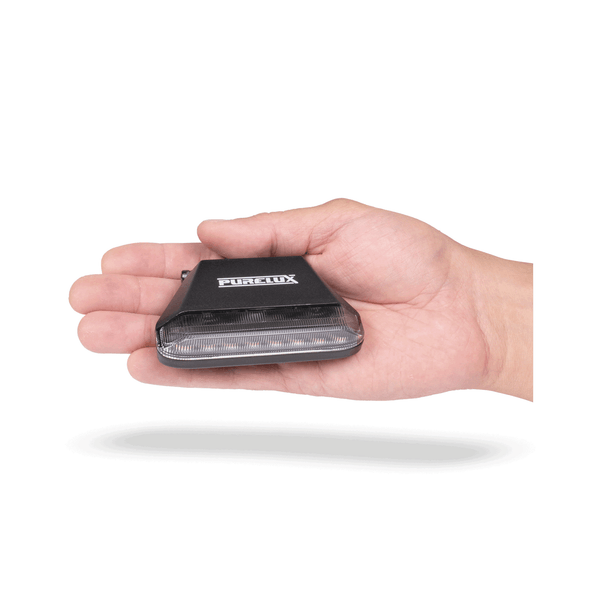 Purelux Radar R65 er et kompakt og praktisk advarselslys, som er godkendt til vejtrafik og tilbyder op til seks forskellige blinkmønstre. Takket være innovativ linse- og LED-teknologi spredes lyset op til 180° og giver et klart orange advarselssignal både direkte bag lampen og til begge sider. Det flade og kompakte design gør, at Radar er nem at montere selv på trange steder, eksempelvis nederst på kofangeren, hvor det stort set er usynligt, når det er slukket, men når det aktiveres, tiltrækker det garanteret opmærksomhed fra alle i nærheden.