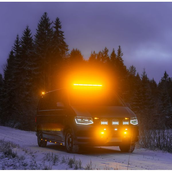 Moderne advarselsrampe designet til krævende professionel brug, udstyret med 12 forskellige blinkfunktioner og et R65-godkendt advarselslys. Stød-, vand- og støvafvisende konstruktion og den bedst mulige beskyttelse mod radiointerferens. Velegnet til både 12V- og 24V-systemer.
