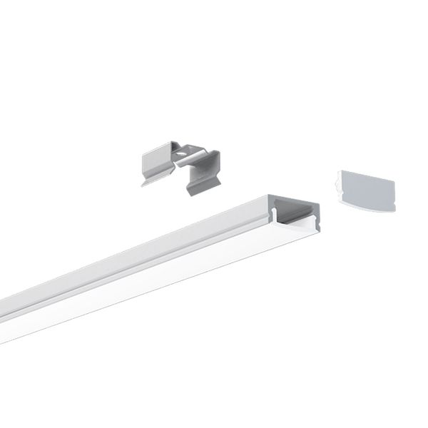 Aluminiumsprofil til overflademontering af LED-strips, udstyret med en opal skærm og en aluminiumsramme, der effektivt afleder varmen fra stripsen. Nem og pæn installation! Profilen kan afkortes eller forlænges, hvis det er nødvendigt. Længde 100 eller 200 cm. Til en maksimalt 12 mm bred LED-strip.