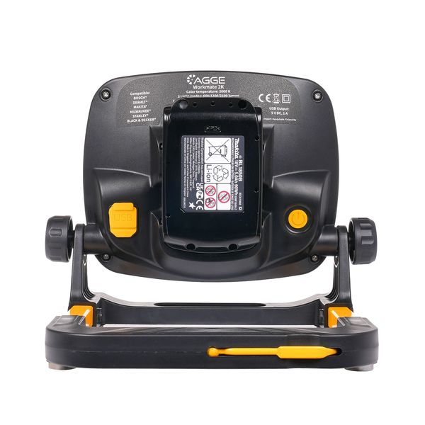 AGGE Workmate 2K er en kraftig arbejdslampe med bredt lysbillede, der fungerer med de fleste almindelige 18-21V borebatterier. I modsætning til mange andre batteridrevne arbejdslamper kan Workmate bruges med det samme batteri som dit værktøj, så du behøver ikke at spilde tid på at lede efter den rigtige strømforsyning og oplader! Workmate 2K er direkte kompatibel med Bosch-, DeWalt-, Makita-, Milwaukee-, Stanley- og Black & Decker-slide-on-batterier, så når dagen er omme, oplades dens batteri bekvemt med den samme oplader som værktøjsbatterierne.