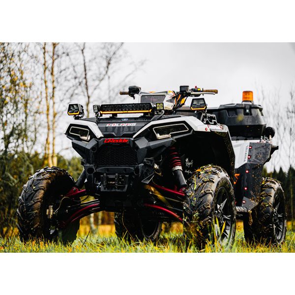 Ud over deres fremragende lysydelse er Panther Alpha-lygter også ekstremt stilfulde med et unikt designsprog, der er helt anderledes end andre arbejdslygter på markedet. Det fantastiske design kombineret med den mørke profil og det orange eller røde parkeringslys i bunden af den rammefrie linse gør Alpha til en unik tilføjelse til ethvert køretøj. Derudover er lygterne bygget til at modstå udfordrende forhold, hvilket fremgår af deres højest mulige vandtæthedsklasse (IP69K), et holdbart aluminiumshus og en næsten ubrydelig polykarbonatlinse. Lygterne har også et intelligent varmereguleringssystem, der forhindrer overophedning selv på lange arbejdsdage, hvilket giver sikker og bekymringsfri drift selv under sæsonarbejde. Det brede spændingsområde (9-36V) gør det muligt at installere dem på både 12V- og 24V-systemer.