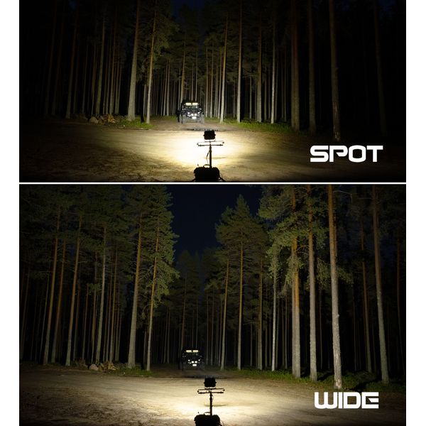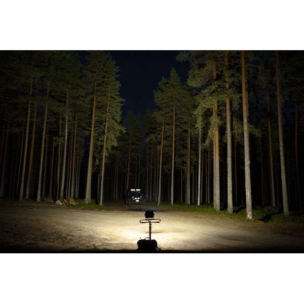 Arbejdslampe designet til tung professionel brug, udstyret med en bred lysstråle, en holdbar struktur, robust monteringsbase og utrolig ydeevne. Farvetemperatur 5000K, beskyttelsesklasse IP69K. Opmålt lysstrøm 12732 lm, rækkevidde 110 m (@ 1 lux).