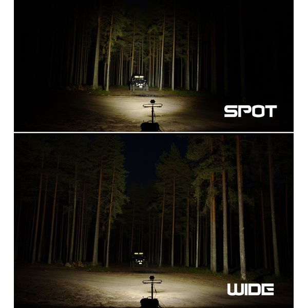 Arbejdslampe designet til tung professionel brug, udstyret med en bred lysstråle, en robust struktur, robust monteringsbase og et fremragende forhold mellem størrelse og effekt. Farvetemperatur 5000K, kapslingsklasse IP69K. Opmålt lysstrøm 2954 lm, rækkevidde 71 m (ved 1 lux).