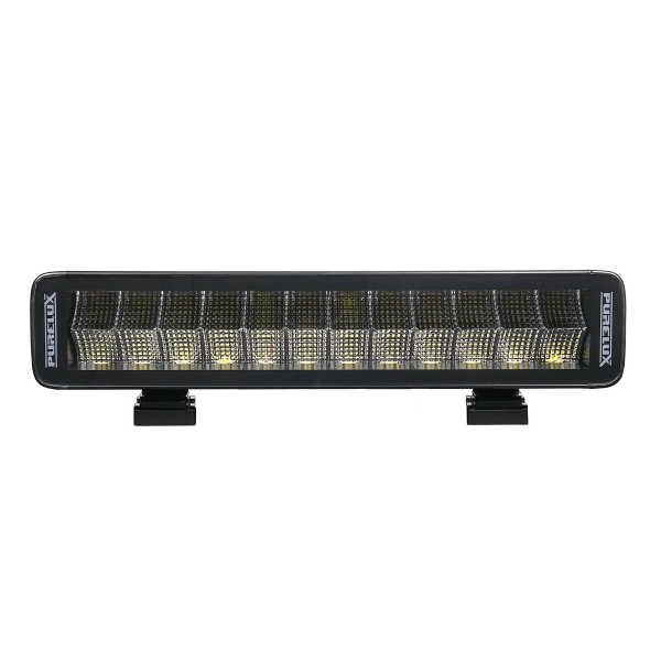 Purelux Terrain Straight 120W er den mindste model i producentens helt nye sortiment af arbejdslamper. Den har et fladt design, og dens størrelse gør den velegnet til montering på trange steder eller på mindre maskiner som f.eks. ATV'er. På trods af sin lille størrelse er Purelux Terrain Straight 120W imponerende kraftfuld - producenten hævder et teoretisk lysflow på op til 10080 lumen, hvilket er langt fra en selvfølge for et armatur af denne størrelse! I denne model er reflektoroverfladen på hver LED trimmet, hvilket giver en flad, bred stråle. Det betyder, at der ikke længere er et langt punkt i lyskeglen, men at lyskeglen er jævnt oplyst i hele området, så der ikke er mørke pletter på gaden. Derfor er Terrain Straight 120W bedst egnet til belysning på nært hold, og når der er behov for en lille, effektiv arbejdslampe med en bred vinkel. Godt forhold mellem størrelse og effekt!