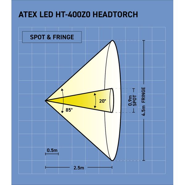 HT-400 er fuldt beskyttet mod støv og vand i henhold til IP67 og er egnet til ATEX-zonerne 0/1/2/21/22, hvilket betyder, at den kan bruges både i områder med eksplosivt støv og eksplosive gasser. Pakken indeholder både et pandebånd og fire hjelmkroge, så lygten også kan fastgøres til en sikkerhedshjelm, hvis det er nødvendigt.