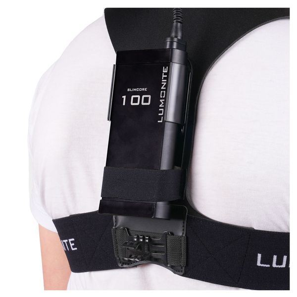 Lumonite Slimvest V2 er en batterivest med en helt utrolig komfort og en lav vægt, som er kompatibel med Lumonite Slimcore-batterier i DX-serien. Denne model er en opdateret variant af den meget populære Lumonite Slimvest, som har fået mange gode anmeldelser. Batterivesten er konstrueret og perfekt tilpasset til aktiviteter som løb, orientering, skiløb, mountainbike, klatring og lignende aktiviteter hvor man behøver at have hænderne fri og en lang batterilevetid. Batteriholderen, som sidder på bagsiden, låser batteriet på plads, så den ikke kan bevæge sig selv under hårde forhold.