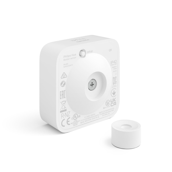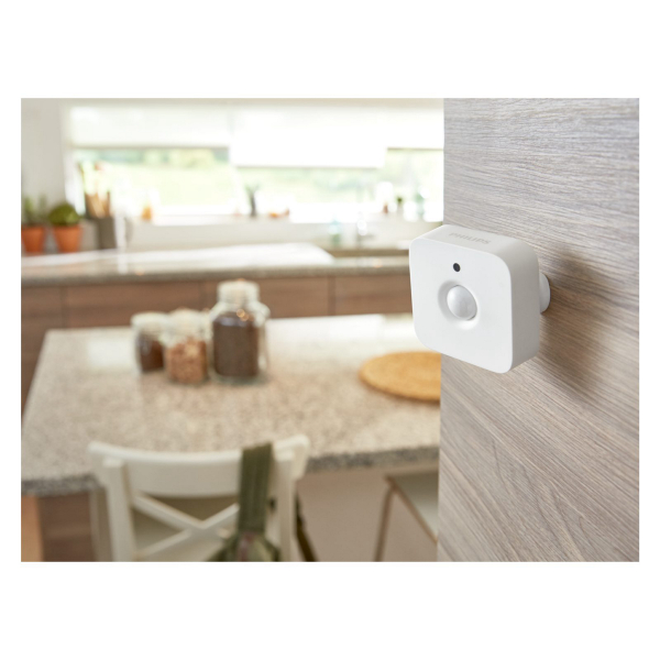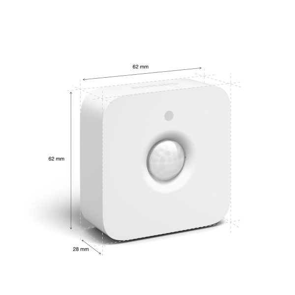 Philips Hue Motion Sensor er en bevægelsessensor, der bruges til at tænde Philips Hue-lamper ved bevægelse. Bevægelsessensoren er designet til indendørs brug og drives af et AAA-batteri (medfølger) og kan nemt installeres hvor som helst i hjemmet. Så snart sensoren registrerer bevægelse, tænder sponsoren lyset, hvilket er perfekt til gangen, badeværelset, kælderen og garagen. Med Philips Hue-appen kan du vælge, hvilken lysscene eller indstilling der skal aktiveres, når der registreres bevægelse. Der kan bruges forskellige lysindstillinger til dag og nat. Om dagen kan sensoren aktivere et klart hvidt lys, der gør, at du ser bedre. Om natten kan den tænde et natlys, der giver et blødt lys, når du, din partner eller dit barn står ud af sengen. Lige nok lys til at hjælpe dig med at finde vej i mørket uden at vække resten af familien.