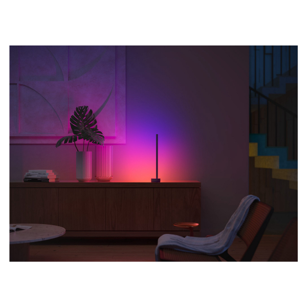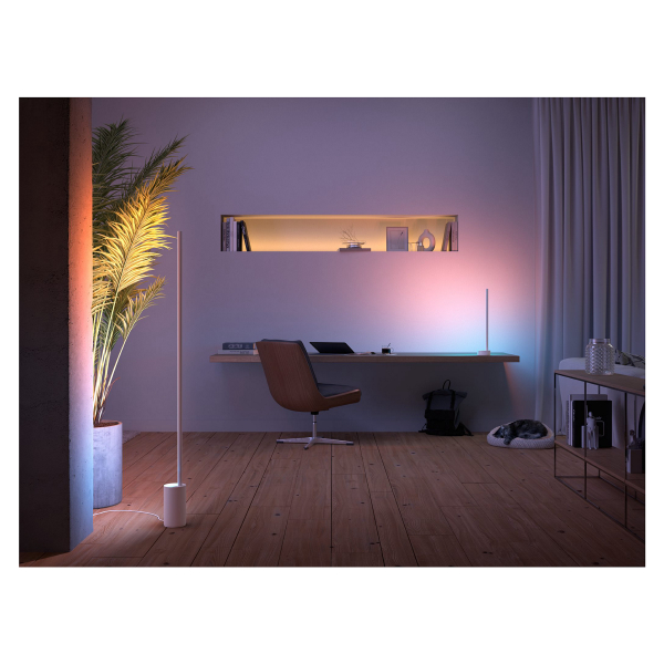 Philips Hue Gradient Signe er en moderne bordlampe, der kan styres via Philips Hue-appen. Takket være den smidige farveændringsteknologi og det elegante design skaber lampen en dejlig og farverig atmosfære i ethvert rum i hjemmet. Med gradueret belysnings-teknologi kan du skabe unik belysning bestående af flere forskellige farver med kun én lampe. Lampen kan placeres stort set hvor som helst, f.eks. i soveværelset for at lysne eller farve væggene eller endda i stuen ved siden af tv'et for at forbedre underholdningsoplevelsen. Kun din fantasi sætter grænser med denne lampe! Gradient Signes farver kan justeres trinløst via Philips Hue-appen, når den er tilsluttet Philips Hue-smart belysningssystem. Lampen kan styres enten med en smartphone via Bluetooth eller via Hue Bridge, så alle dens funktioner kan bruges. Gradient Signe er ligesom alle produkter i Hue-serien kompatible og kan styres via en smartphone, Hue Bridge eller en Hue Dæmpbar Kontakt. Lampen kan naturligvis også tændes og slukkes med en almindelig afbryder. Deklareret lysflow 2550 lumen, farvetemperatur 2000 - 6500 K, justerbare farvetoner. Findes i enten hvid eller sort. To års garanti!