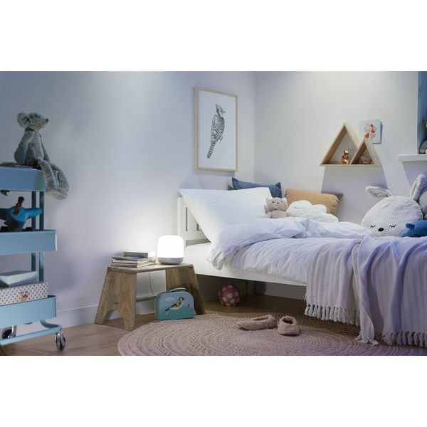 Wiz Hero er en smart bordlampe, der styres via Wiz-mobilappen, og som kan bruges til at skabe lyst eller farverigt lys. Ud over den farveskiftende funktion kan lampen også dæmpes trinløst, hvilket gør den ideel til almen- og stemningsbelysning i f.eks. børne- eller soveværelser. Hero har færdige lysindstillinger til koncentration og afslapning, men du kan også justere farven og lysflowet efter dine personlige præferencer ved hjælp af Wiz-appen. De færdige velfærdsfunktioner gør det muligt for lampen at tilpasse sig brugerens døgnrytme, f.eks. ved at give et køligt, klart lys om dagen, mens lyset om aftenen gradvist skifter til en varmere nuance. Nominelt lysflow på 620 lumen, farvetemperatur fra 2200 til 6500 Kelvin, justerbar lysfarve.