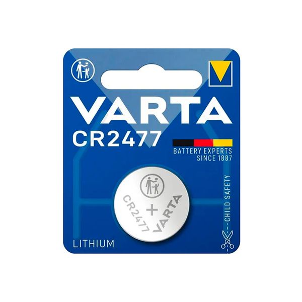 Varta CR2477 knapcellebatteri til bilnøgler, fjernbetjeninger, lommeregnere, kameraer, ure, vægte, legetøj og andre elektroniske enheder. Vartas batterier er ideelle til nordiske forhold takket være deres brede temperaturområde og lange driftstid. Sælges enkeltvis.