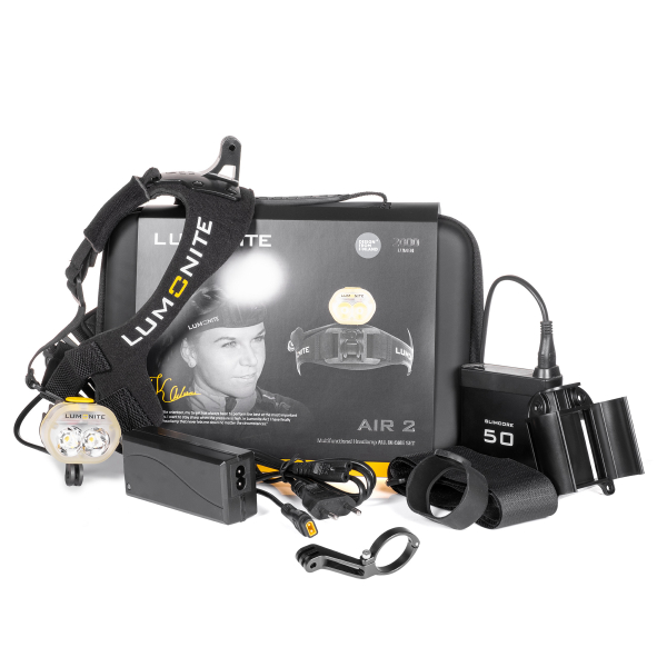 Lampens batteri opbevares praktisk i den medfølgende batterivest. Den kan også nemt lægges i lommen eller rygsækken. Lampen sættes fast i hjelmens skærm ved hjælp af det GoPro-kompatible beslag. Lampens monteringsfod gør det muligt at montere lampen direkte på hjelmen med et GoPro beslag, så længe hjelmens ydremateriale tillader dette. Samme GoPro adapter kan anvendes til at sætte lampen fast i andre GoPro beslag, hvilket nærmest giver dig uendelige monteringsmuligheder. Pandebåndet og forlængerledningen medfølger i pakken, og med disse kan du enkelt anvende Air2 som en helt normal pandelampe.