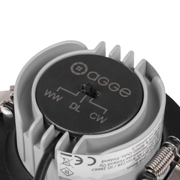 AGGE Round Flood Antiglare er et rundt indbygningsspot med blændfrit design, bred lysspredning og høj farvegengivelse. Armaturet har et robust aluminiumskabinet af høj kvalitet og er beregnet til både tørre rum og vådrum. Selve lyskilden er placeret dybt i kabinettet, hvilket minimerer lysspredning til siderne og skaber et blødere og mere behageligt lysbillede end normalt. Ved installationen kan du nemt vælge mellem tre farvetemperaturer: varm hvid (3000 K), neutral hvid (4000 K) eller kold hvid (5000 K). Derudover er armaturet dæmpbart med Triac-lysdæmper. Takket være den justerbare farvetemperatur og lysdæmperfunktion kan du skabe en unik atmosfære i hvert rum, samtidig med at du bevarer et ensartet udtryk i hele hjemmets belysning.