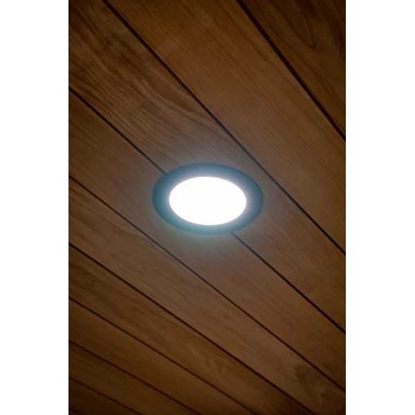 AGGE Round Flood Black er et stilrent indbygningsspot med bred lysspredning, høj farvegengivelse og et robust aluminiumskabinet. Det er designet til at passe i både tørre og fugtige rum. Ved installationen kan du nemt vælge mellem tre farvetemperaturer: varm hvid (3000 K), neutral hvid (4000 K) eller kold hvid (5000 K). Derudover er armaturet dæmpbart med Triac-lysdæmper. Takket være den justerbare farvetemperatur og dæmperfunktion kan du skabe en unik atmosfære i hvert rum, samtidig med at du bevarer et ensartet udtryk i hele hjemmets belysning.
