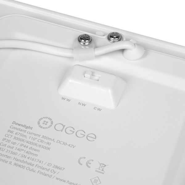 AGGE Square Flood White er et stilrent indbygningsspot med bred lysspredning, høj farvegengivelse og et robust aluminiumskabinet. Det er designet til at passe i både tørre og fugtige rum. Ved installationen kan du nemt vælge mellem tre farvetemperaturer: varm hvid (3000 K), neutral hvid (4000 K) eller kold hvid (5000 K). Derudover er armaturet dæmpbart med Triac-lysdæmper. Takket være den justerbare farvetemperatur og dæmperfunktion kan du skabe en unik atmosfære i hvert rum, samtidig med at du bevarer et ensartet udtryk i hele hjemmets belysning.