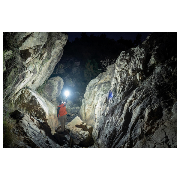 Effektiv, genopladelig lommelygte med et lysoutput på 1750 lumen. Hvidt lys + RGB-lys, der passer til mange forskellige situationer. Komplet pakke!