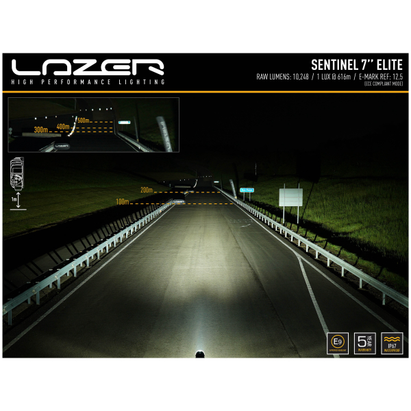 Lazer Sentinel 7" Elite Parklight er den mest kraftfulde version af den nye 7-tommer kollektion af Sentinel-serien, som har fået meget ros blandt professionelle bilister. Sentinel-serien kombinerer både stilfuldt design og ydeevne i topklasse uden at gå på kompromis med den velkendte Lazer-kvalitet. Sentinel 7" Elite-modellen er udstyret med 24 stk. højeffektive LED'er, som skaber en fantastisk mængde lys. Producentens angivne lysflow er hele 10248 lumen, og det alene gør, at den skiller sig ud fra andre konkurrerende produkter. Lysflowet kombineret med effektivt spejlende og vakuummetalliserede reflektoroverflader, skaber et behageligt kobinationslysbillede, som effektivt oplyser både vejkanten og langt frem. Den angivne rækkevidde for én lampe er 616 meter @ 1 lux! Med to lys kan lamperne enten monteres ved siden af hinanden eller oven på hinanden, så du kan få den belysning, du ønsker. Det specielle ved denne model er dens parkeringslys-funktion, hvis farve kan indstilles til traditionel hvid eller iøjnefaldende orange. På grund af dens størrelse er lamperne i Lazer Sentinel 7"-serien bedst installeret foran på både personbiler og større SUV'er.