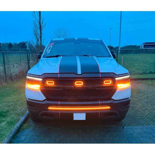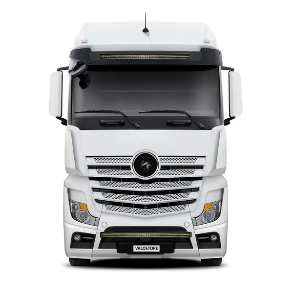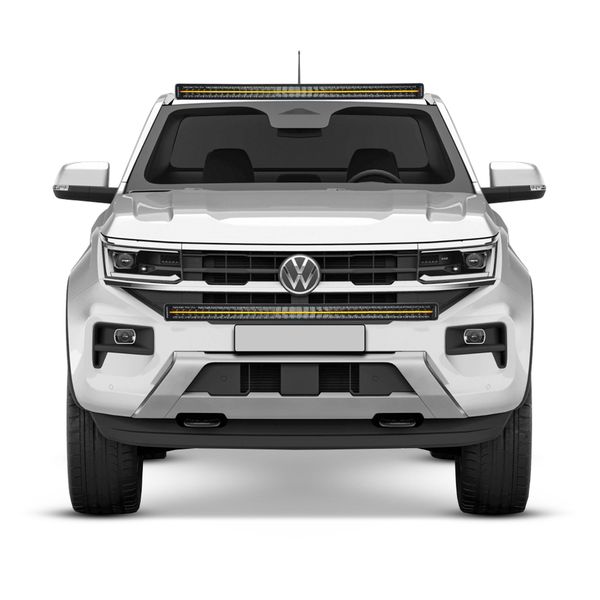 Stilfuld fjernlysrampe i to rækker med bl.a. dynamisk parkeringslys i to farver og to forskellige strømtilstande. Stor ydeevne til en god pris! Opmålt lysstrøm 24336 lm, opmålt rækkevidde 580 m ved 1 lux.