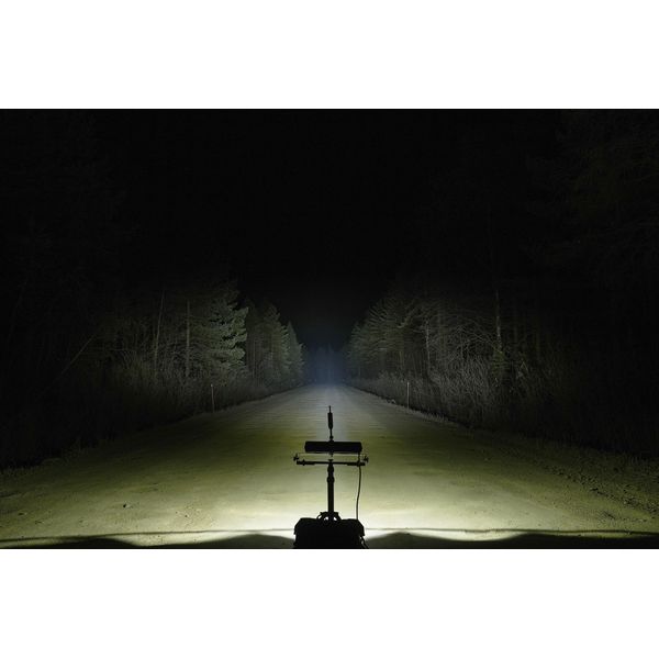 Stilfuld, to-rækket fjernlys i mørkt design, udstyret med to forskellige strømtilstande. Stor ydeevne til en fordelagtig pris! Opmålt lysstrøm på 7723 lm, med en rækkevidde på 558 m ved 1 lux.