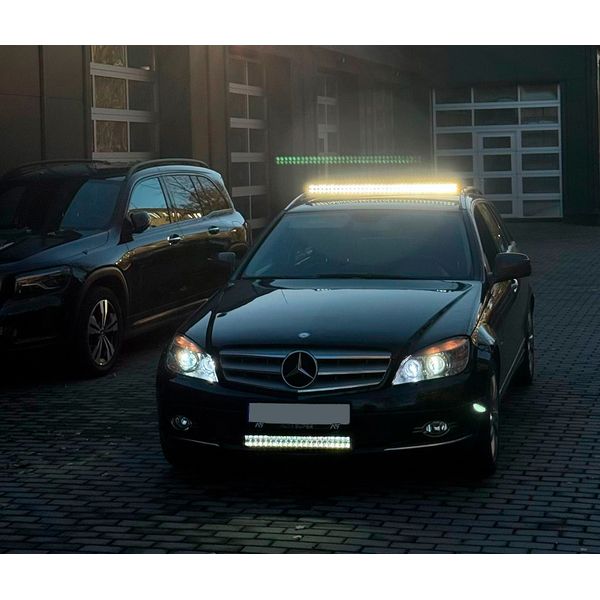 Stilfuldt fjernlyspanel i to rækker med bl.a. dynamisk parkeringslys i to farver og to forskellige strømtilstande. Stor ydeevne til en god pris! Opmålt lysstrøm 12648 lm, opmålt rækkevidde 654 m ved 1 lux.