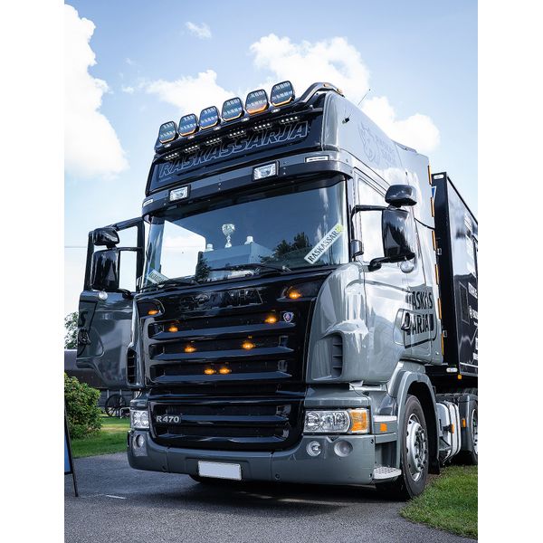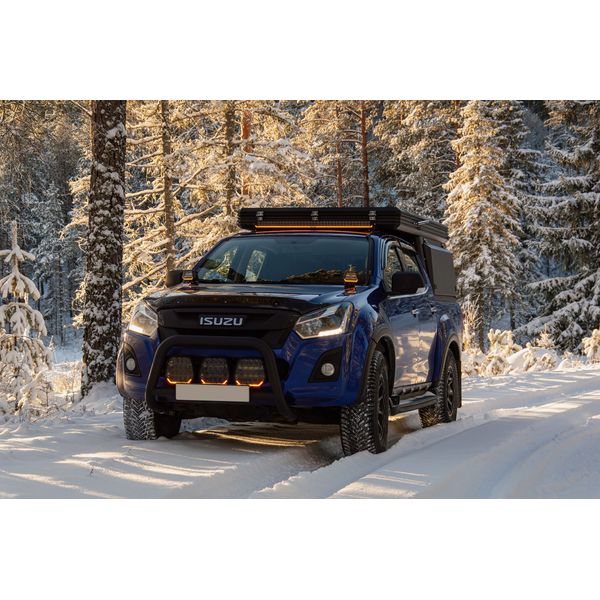 I modsætning til mange andre fjernlys på markedet er Panther 9 udstyret med en R65-godkendt orange advarselslampe, som kan bruges til specialtransport, når et køretøj f.eks. bevæger sig fra en vej til en byggeplads eller til trafikkontrol. Det klare, strålende advarselslys er diskret og sikrer sikkerheden for dem, der arbejder på køretøjet, uden at der er behov for separate advarselslys. Advarselslyset kan f.eks. monteres bag en separat kontakt, så det altid er tilgængeligt, når der er brug for det. Advarselslyset har fem forskellige blinktilstande og kan synkroniseres til at blinke på samme tid, hvilket giver køretøjet et ensartet udseende.