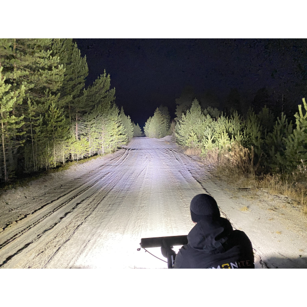 Reflektoroptiken är optimerad för vägtrafik, och ger både en koncentrerad spot med lång räckvidd (mitten-LED:erna) och ett brett och heltäckande ljus (sido-LED:erna).