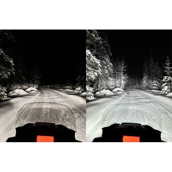 Fjernlyset er udstyret med en behagelig farvetemperatur på 4042 Kelvin, som fungerer bedre end koldere lys i f.eks. sne og tåge. Den varme farvetemperatur trænger igennem tåge og snedrys som en tågelygte, og sne, der blæser rundt, reflekteres ikke på samme måde som ved brug af koldere farvetemperaturer. Armaturet er kun 40 mm højt, og de lave monteringsfødder giver mulighed for en pæn og diskret installation. Den kantløse linse forhindrer sne, is og snavs i at samle sig foran linsen. Fjernlyset er fuldt beskyttet mod støv og vand i overensstemmelse med IP68-beskyttelsesklassen, og linsen er UV-beskyttet og fremstillet af næsten brudsikkert polykarbonat. SM250 monteres nemt ved hjælp af de medfølgende side- eller skinnebeslag, og installationen lettes af det formonterede 2-benede DT-stik. Med sit slanke og tynde armatur kan SM250 monteres pænt og diskret på enhver snescooter. To års (24 måneder) garanti!