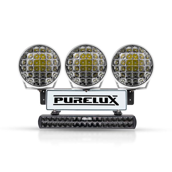 Purelux WRC 1 er et vanvittigt kraftfuldt sæt med tre runde og en fjernlysrampe til virkelig udfordrende forhold og til dem, der virkelig ønsker at se i enhver situation. Sættet leveres med tre Purelux 9110 Gen4 cirkulære fjernlys med et lysudbytte på over 14 000 lumen målt på en enkelt lygte alene og en rækkevidde på 1016 m ved 1 lux. Med tre lygter stiger den målte rækkevidde for de runde lygter alene til 1760 m (@ 1 lux). Sættet indeholder også en Purelux Major S530, hvilket bringer det samlede målte lysudbytte for sættet op på hele 58.000 lumen. Panelets brede stråle og antallet af cirkulære lygter gør det muligt at rette lygterne, så hele landskabet fra fronten til siden af vejen bliver oplyst, uanset om man kører om natten eller om dagen. Desuden kan de runde lygter i kanterne f.eks. rettes, så de kaster lyset lidt til siden, så lyset ved kørsel i et sving eller en helle rettes til siden og rundt i svinget. Hele pakken monteres pænt på fronten med et enkelt beslag bag/på nummerpladen, som gør det muligt at placere de runde lygter oven på pladen og panelet under pladen.