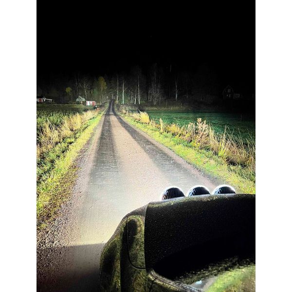 Chokerende effektivt fjernlyssæt med tre runde lygter og et ekstra lyspanel til virkelig krævende brug. Kombineret effekt på over 58 244 lumen. IKKE GODKENDT TIL VEJTRAFIK!