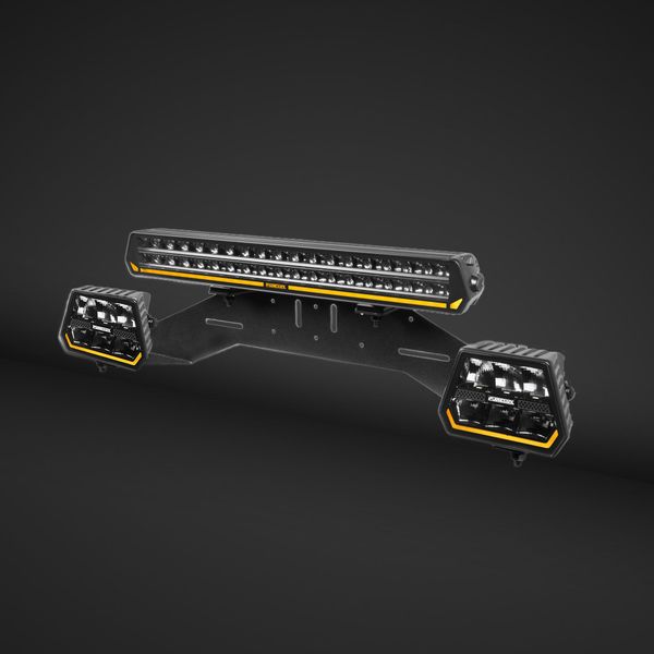 Pakken indeholder en praktisk WRC fjernlysholder, hvor fjernlysene kan monteres, så de runde fjernlys er placeret på siderne af nummerpladen og rampen ovenover. Panther S540 Gen3 har en rækkevidde på op til 645 meter (1 lux) i sig selv, hvilket oplyser selv en bredere vej fra side til side. Panther 5-fjernlysene på siderne af rampen kan rettes lidt til siderne for at få et endnu bredere lysbillede, så køretøjets umiddelbare omgivelser, grøfter og vejkanten også kan blive effektivt oplyst. Lygterne kan selvfølgelig også rettes lige frem for at maksimere rækkevidden. Med fjernlysholderen, der følger med i pakken, kan lygterne monteres pænt og nemt, så selve holderen forbliver skjult bag nummerpladen, og kun fastgørelsespunkterne til fjernlysene forbliver synlige.