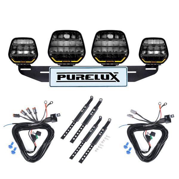 Sættet leveres med en fjernlysholder til montering af lygterne, så alle lygterne er pænt placeret over nummerpladen. De fire lygter gør det muligt at forme lysbilledet, så den passer til den enkelte brugers behov. For at opnå maksimal rækkevidde kan alle lygter rettes mod det samme punkt, mens lygterne i midten kan rettes lige frem for at opnå en bredere stråle, og lygterne på kanterne kan drejes, så de peger lidt ud til siderne. For at maksimere lysbilledets bredde kan alle lysene også rettes lidt overlappende, så strålerne er delvist side om side. Du kan købe dette sæt med enten hvide eller sorte fjernlys. Der er ingen forskel på lygterne ud over farven på kroppen, så vælg den, du foretrækker, under produktmulighederne.