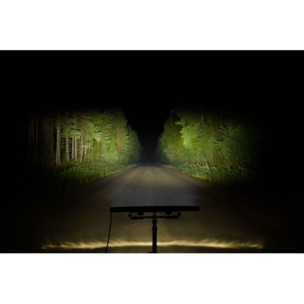 Lysbilledet på Panther C800 er en perfekt balance mellem rækkevidde og bredde. Takket være det buede design spredes lyset sideværts over et meget bredt område, så vejkanter, grøfter og skovbryn kan belyses effektivt. Lyset er blødt defineret i lodret retning ligesom andre lygter i Panther-serien, hvilket minimerer spild opad og forhindrer blænding, samtidig med at det giver tilstrækkelig højde til at belyse bakket terræn og tagmonteret udstyr.