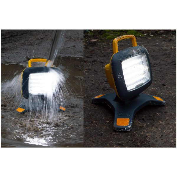 Arbejdslampens kabinet er fremstillet af robust og stærk komposit, hvilket gør den imponerende modstandsdygtig over for stød - ifølge producenten kan arbejdslampen modstå et fald på op til 2,5 meter. Desuden er NightSearcher Galaxy Pro-6K støv- og vandafvisende i henhold til IP54.