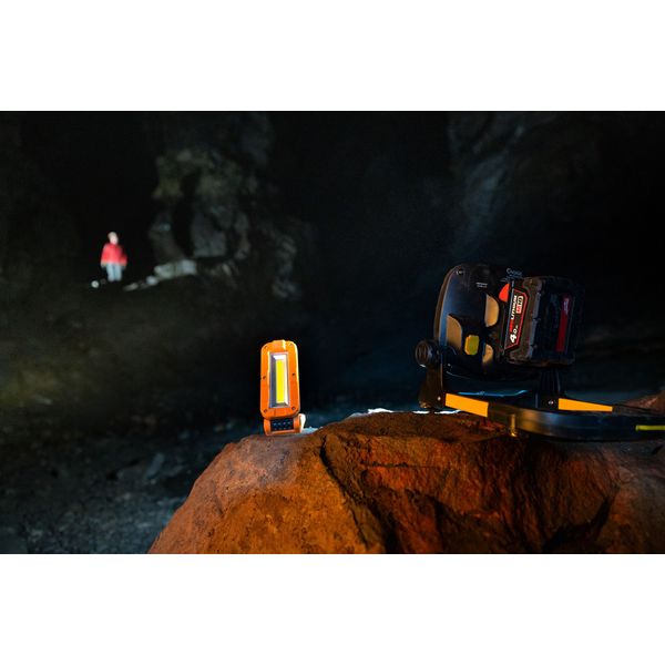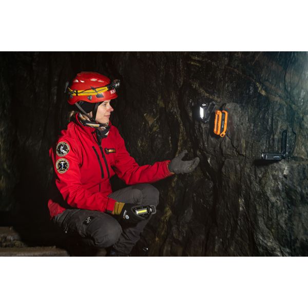 En kompakt, men kraftig genopladelig arbejdslampe med en bred og smal stråle samt et rødt lys. Alsidige justerings- og monteringsmuligheder. Nominelt lysflow 1100 lm, IPX4-klassificeret.