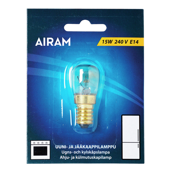 Den lyse, lille husholdningspære, som kan tåle både ekstremt varme og kolde forhold, er velegnet til montering i f.eks. ovn eller køleskab. Pæren har et specielt bundsæt, der tillader driftstemperaturer på op til 300 grader. Ikke egnet til rumbelysning. E14 sokkel, effekt 15W.