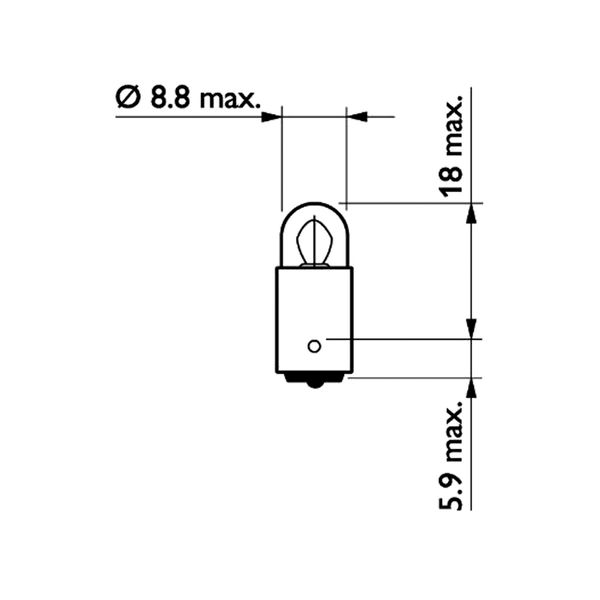Philips T2W 24V halogenlampe, specielt til 24V-systemer til tungt udstyr. Lampesokkel BA9s, nominel effekt 2W.