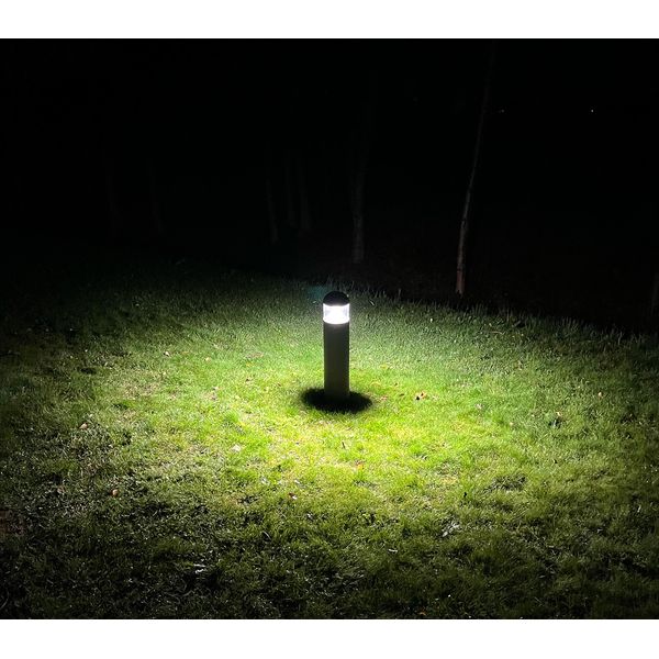 Armaturhuset er sort og falder let ind i udemiljøet. I modsætning til plast klarer den aluminiumsbyggede pullert uden problemer kulde, smeltende sne og is samt de belastninger, der påvirker både armatur og jord. Den er støv- og vandtæt ifølge IP66 og slagfast ifølge IK08, så en fodbold, frisbee eller anden stød påvirker ikke funktionen. Den exceptionelt lange levetid på 77 000 timer og den vedligeholdelsesfri konstruktion giver en pålidelig belysning i mange år. To års (24 måneder) garanti!