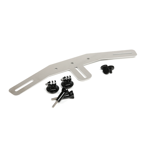 Buen har 3 stk. huller hvilket gør at du kan montere 1 stk. lampe i midten eller 2 stk. lamper på de to ydre huller. Til buen medfølger 2 stk. GoPro-beslag som enkelt monteres med den medfølgende bolt. Der medfølger givetvis også 3 stk. metalskruer til at montere buen på hjelmen. Hjelmbuen leveres flad. Længden er ca. 38 cm.