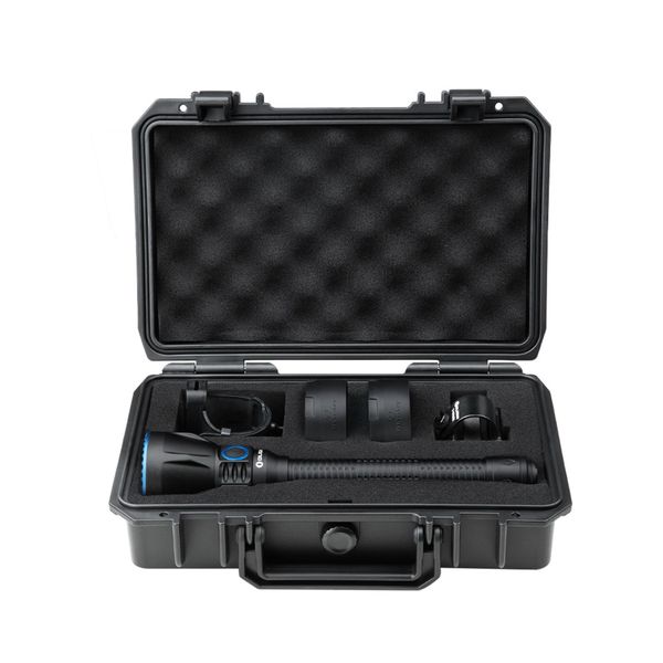 Olight Javelot Turbo 2 er et omfattende våbenlygtesæt, der indeholder en kraftig lygte, en magnetisk våbenclips, en trådløs fjernbetjening, en grøn og rød farveskærm og selvfølgelig en opladningsledning, en clips til fjernbetjeningen og en opbevaringstaske. Javelot Turbo 2 har en maksimal lysstrøm på op til 1800 lumen og en imponerende rækkevidde på 1500 meter med en intens, smal spotlightstråle med masser af diffust lys omkring sig, så det er nemt at observere terrænet i nærheden. Lygtens neutrale farvetemperatur (5200-6200K) gør det nemt at observere terræn og små genstande. Lyset er fastgjort til våbnet med et stift og robust magnetisk beslag (Olight X-WM03). En trådløs fjernbetjening gør det muligt at fastgøre kontakten til en række forskellige våben ved støttehånden, så lyset kan betjenes med et fingerknips uden at ændre våbenets sigte.