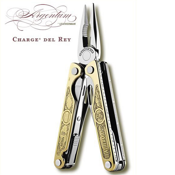 Charge Del Rey er Leathermans flagskib og dyreste produkt lavet af 18 karat guld og stål. Udgivet for at ære Leathermans 25-årige rejse, blev Del Rey designet af den argentinske billedhugger+sølvsmed Adrian Pallarols. Der er kun produceret 25 Del Rey multiværktøjer i guld håndgraveret af Adrian Pallarols. Håndtagene er indgraveret i 18 karat guld og værktøjet er nummereret. Fås med premium eller nylonhylster. 25 års Leatherman garanti.