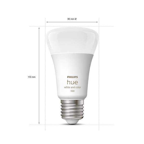 Med denne Philips Hue White Ambience E27 Start Pakke kan du tilføje et smart belysningssystem til dit hjem. Pakken indeholder tre E27 smart LED-pærer med justerbar farvetemperatur, en afbryder og en Hue Tilslutningsenhed, som gør det nemt at styre den smarte belysning. Disse White Ambience-pære kan justeres via Philips Hue-appen og er fantastiske til generel belysning og stemningsbelysning i hjemmet. Pærenes farvetemperatur kan justeres trinløst direkte med den medfølgende kontakt eller via smartphonen i Hue-appen, når den er tilsluttet den medfølgende Hue Bridge. Ved hjælp af disse smarte LED-pærer kan stort set alle lamper med en E27-sokkel gøres kompatible med Philips Hue-smart-systemet. På denne måde kan de forskellige smarte belysningsløsninger i hjemmet også implementeres med de lamper, der allerede findes i rummene. Philips Hue-pærenene fungerer problemfrit sammen med smart tilbehør, f.eks. Hue-dæmperen eller Hue-smartknappen, og selvfølgelig kan pærene også tændes og slukkes med en almindelig afbryder. I dette tilfælde husker pæren den sidste lysindstilling, den havde. Det er lige så nemt at installere en smart pære som at udskifte en almindelig pære. Når den smarte LED-pære er sat på plads i lampen, kan den justeres via appen. Lysflowet fra pærene er 1100 lumen, farvetemperatur 2200 - 6500 Kelvin.