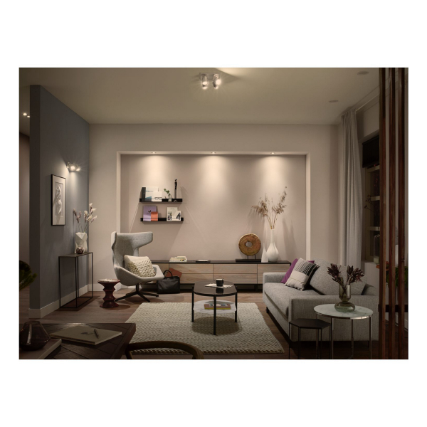 Philips Hue White GU10 er en smart LED-pære og dens farvetemperatur på 2700K er perfekt som generel belysning og stemningsbelysning i hjemmet! Lampen justeres via Philips Hue-appen, hvor bl.a. lysets effekt kan dæmpes trinløst. Ved hjælp af LED-lampen kan praktisk talt enhver lampe med GU10-sokkel gøres kompatibel med Philips Hue smart-systemer. På den måde kan boligens forskellige smart belysningsløsninger også implementeres med de lamper, der allerede er i hjemmet. Pæren kan styres direkte med en smartphone via Bluetooth, eller den kan tilsluttes Hue Bridge, hvor lampen kan styres med andre Hue lamper via Bridge. Philips Hue-lamper fungerer problemfrit med alt Philips Hue-tilbehør såsom Hue Dimmer Switch, lampen kan selvfølgelig også tændes og slukkes med en almindelig kontakt. Angivet lysflow 400 lumen, farvetemperatur 2700 Kelvin.