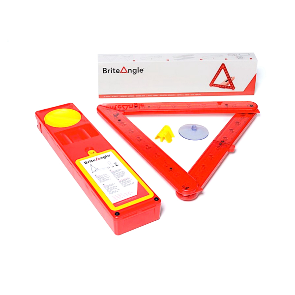 BriteAngle LED-advarselstrekant on er en advarselstrekant, der bruges til ekstra sikkerhed, hvis du f.eks. skal standse din bil i vejsiden. En meget smart løsning - lyset tændes, når du folder advarselstrekanten ud, ellers kan den foldes sammen og opbevares i kufferten. Der medfølger også en sugekop, så trekanten f.eks. kan fastgøres på bilens bagrude. Kufferten er også udstyret med en velcrobånd, som hjælper med at holde den på plads i bagagerummet.