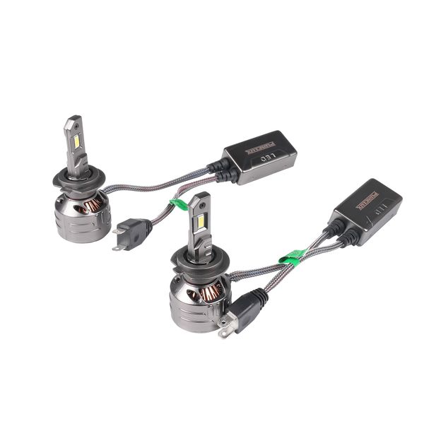 Højtydende LED-lamper med H7-sokkel, der giver op til 400 % mere lys sammenlignet med almindelige halogenlamper! Pakken indeholder 2 LED-pærer, angivet lysstrøm 5000 lm pr. pære, farvetemperatur 4300 K eller 6000 K.