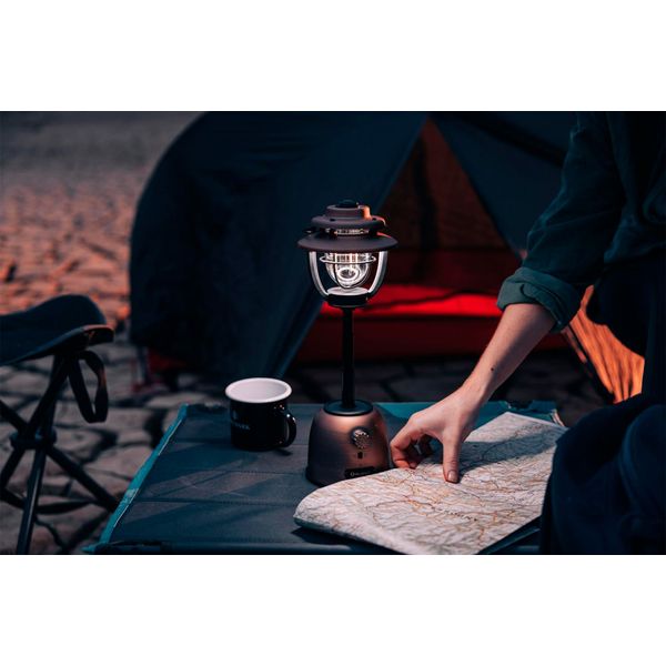 LED-lanterne med en innovativ teleskoparm, der gør det muligt at hæve lyskilden fra jordniveau, f.eks. i et telt eller på en terrasse. Lanternen har justerbar lysstyrke og farvetemperatur med en maksimal lysstyrke på 500 lm. Batteriet har en usædvanlig høj kapacitet og giver op til mere end 10 dages driftstid.
