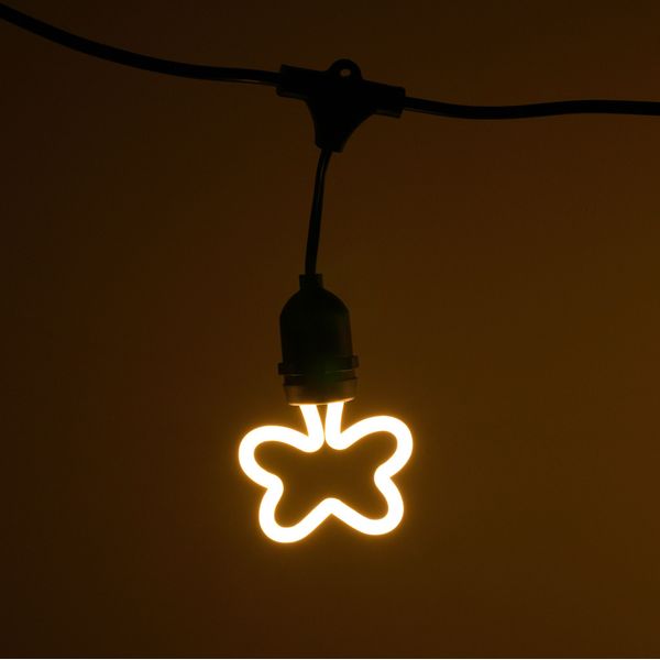 Sommerfuglformet LED-lampe med E27 fatning, der kan bruges til at skabe varm og unik stemningsbelysning i fx børneværelser eller udestuer. Angiven farvetemperatur 2700K, effekt 4W.