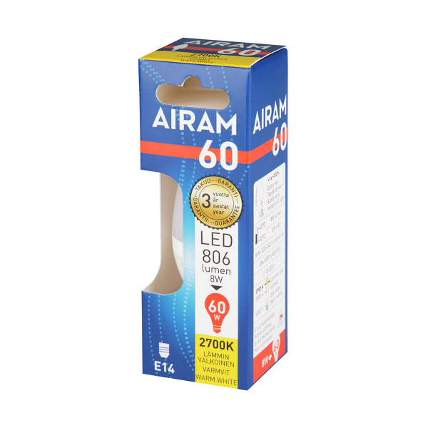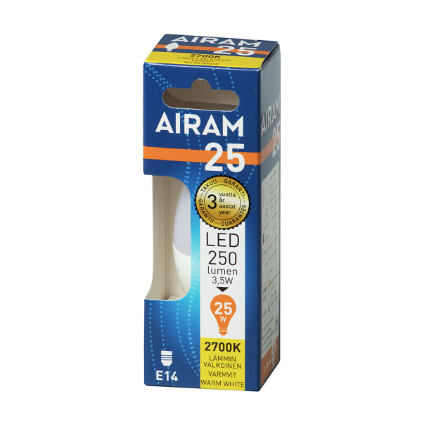LED-pære med E14-sokkel. Farvetemperatur 2700K. Tre års garanti. Du kan vælge mellem tre produktmuligheder.