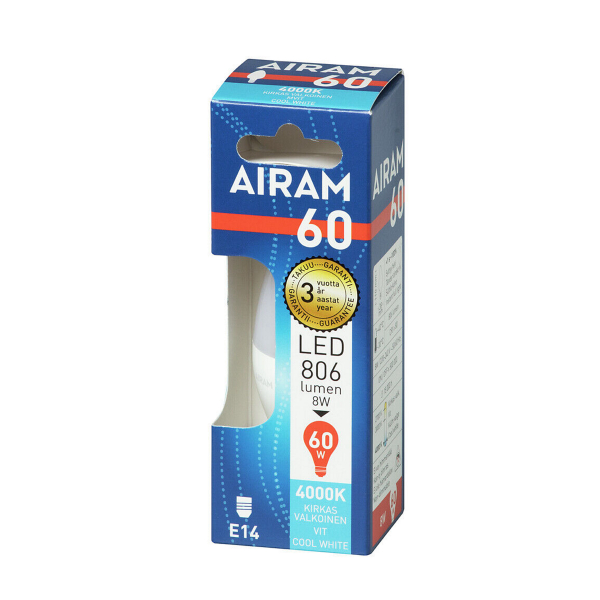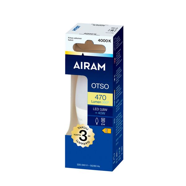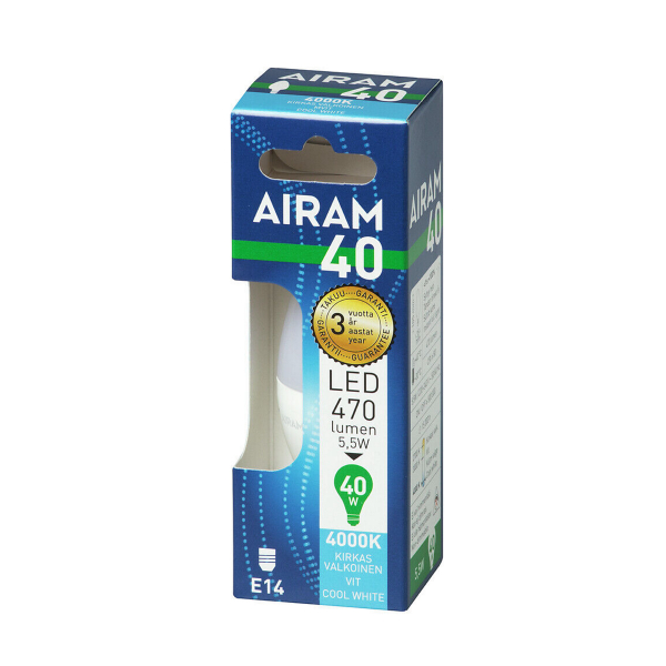 LED-pære med E14-sokkel med en farvetemperatur på 4000K. Du kan vælge mellem tre forskellige muligheder. Tre års garanti!