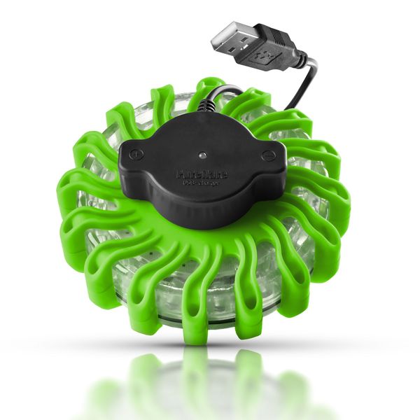 OBS! Pureflare LED-skildpadden oplades via. USB-porten. Hvis du vil oplade den fra et 230V stik eller fra bilens 12V-stik, se denne USB-adapter: